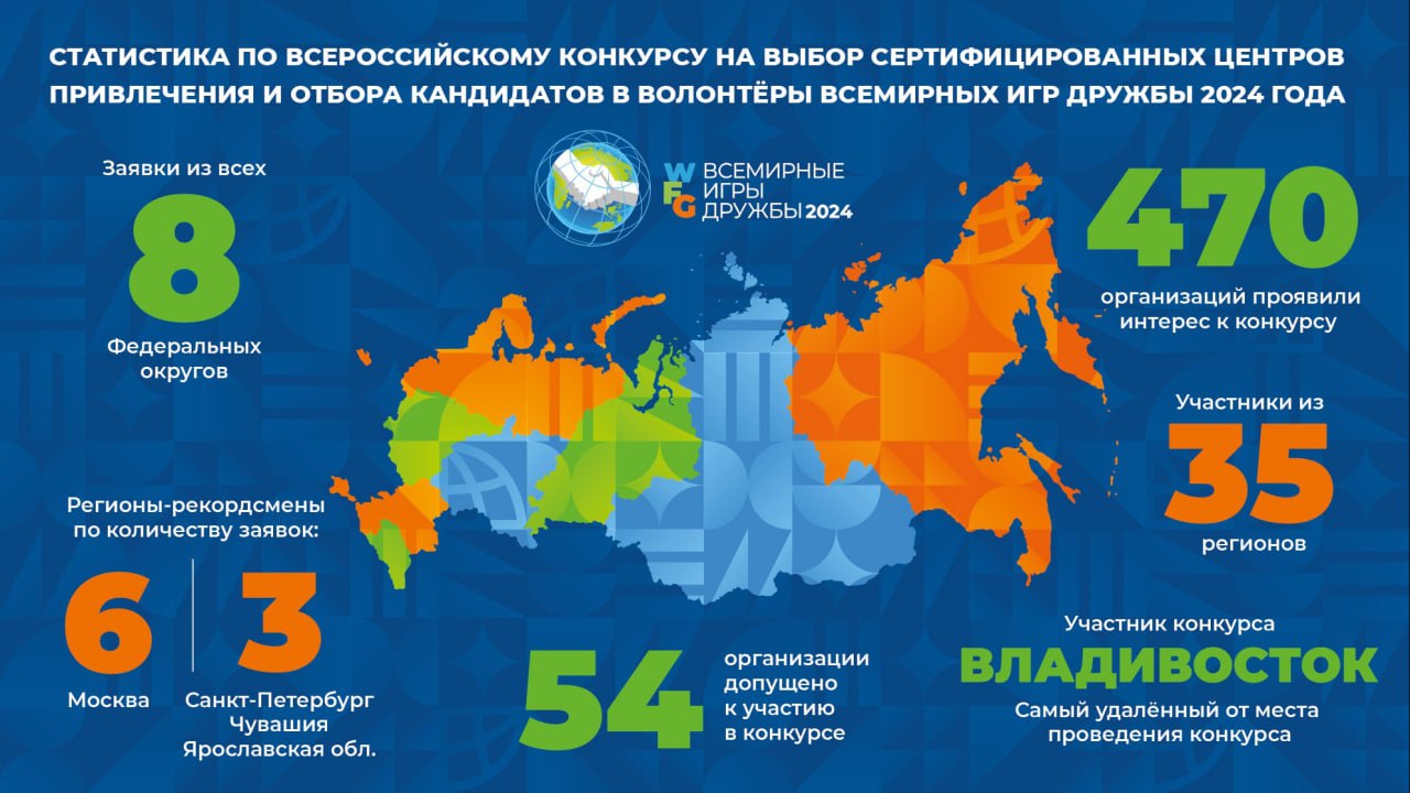 Оргкомитет Всемирных игр дружбы 2024 года завершил Всероссийский конкурс по выбору центров привлечения и отбора кандидатов в волонтёры турнира.